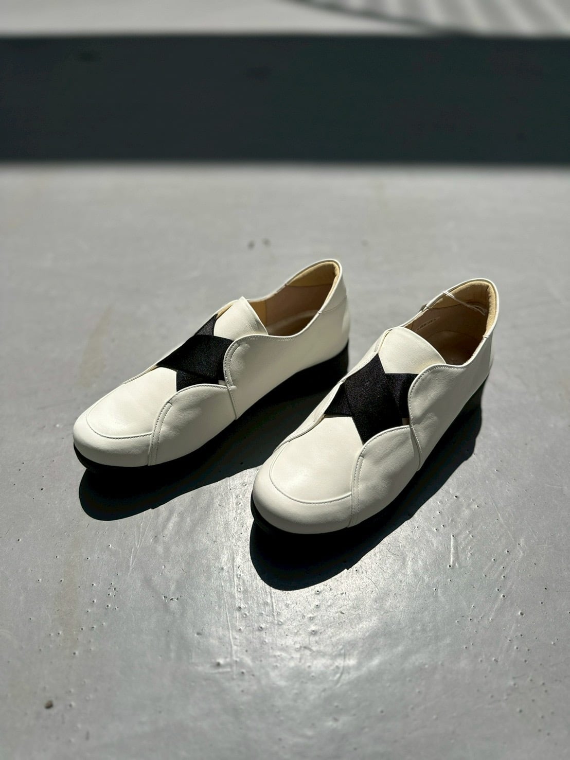 人気の「もちピタ」シリーズから新デザインが登場です。アッパー部分にワイドゴムをデザインした締め付け感のないスリッポン。ゴムがある事で前滑りも防止してくれるので、脱げにくいデザインです。超軽量。