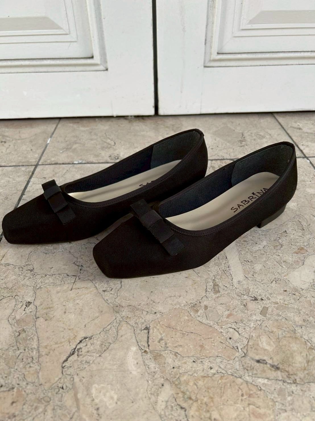 撥水加工のフラットシューズ。