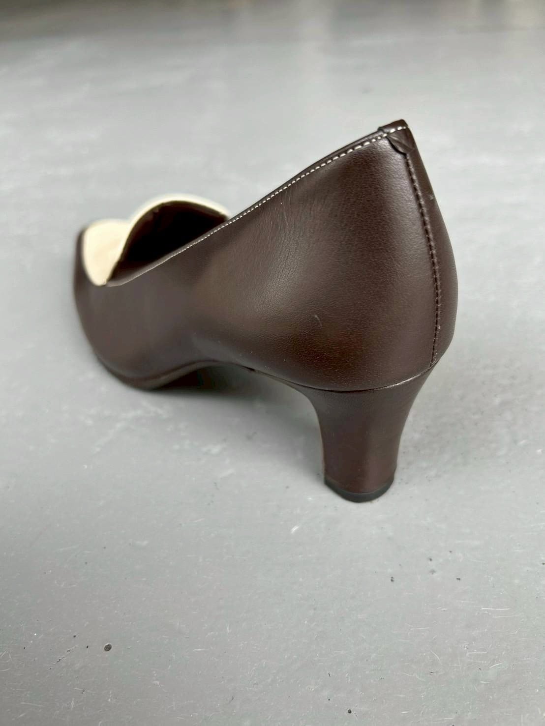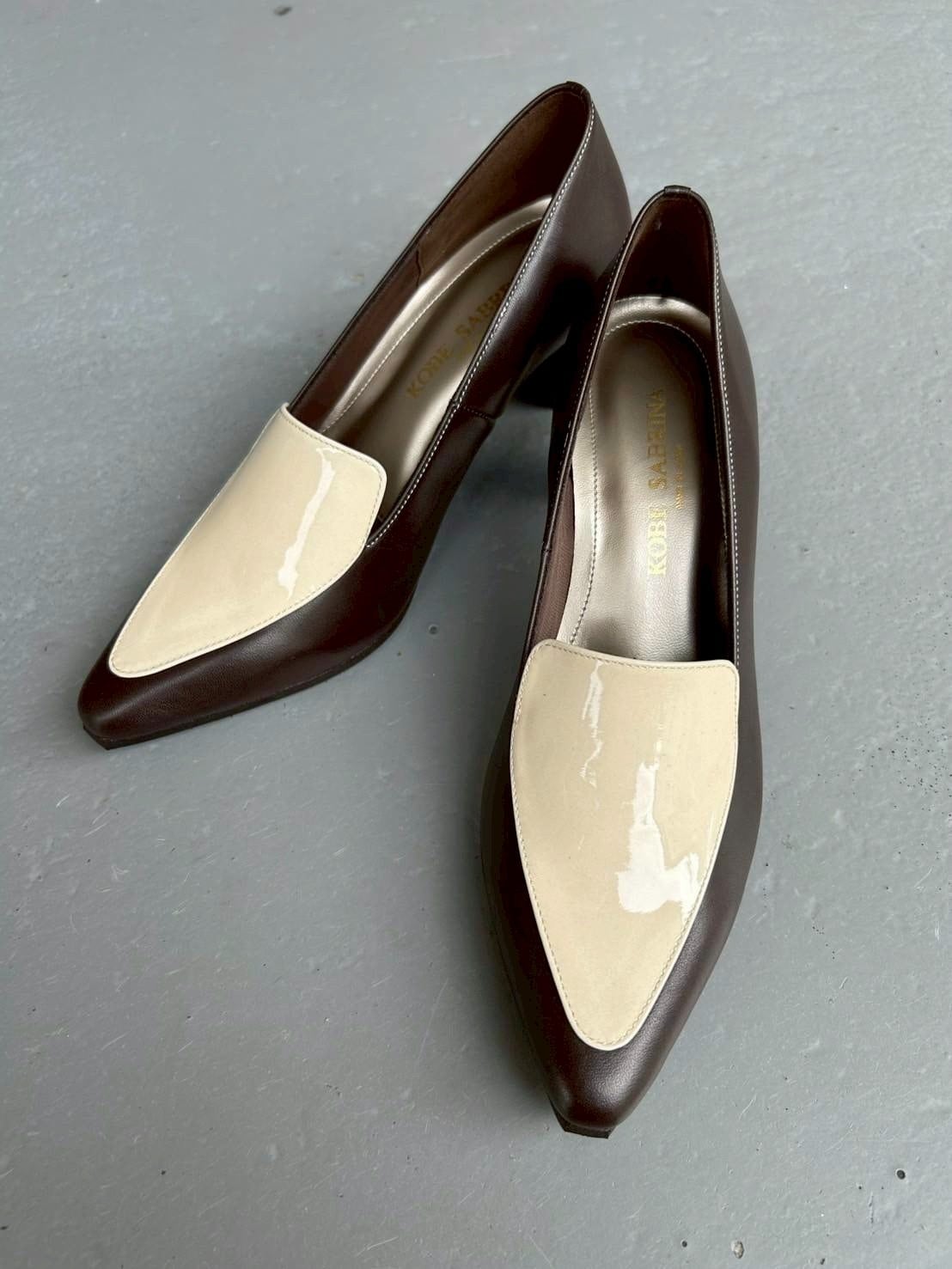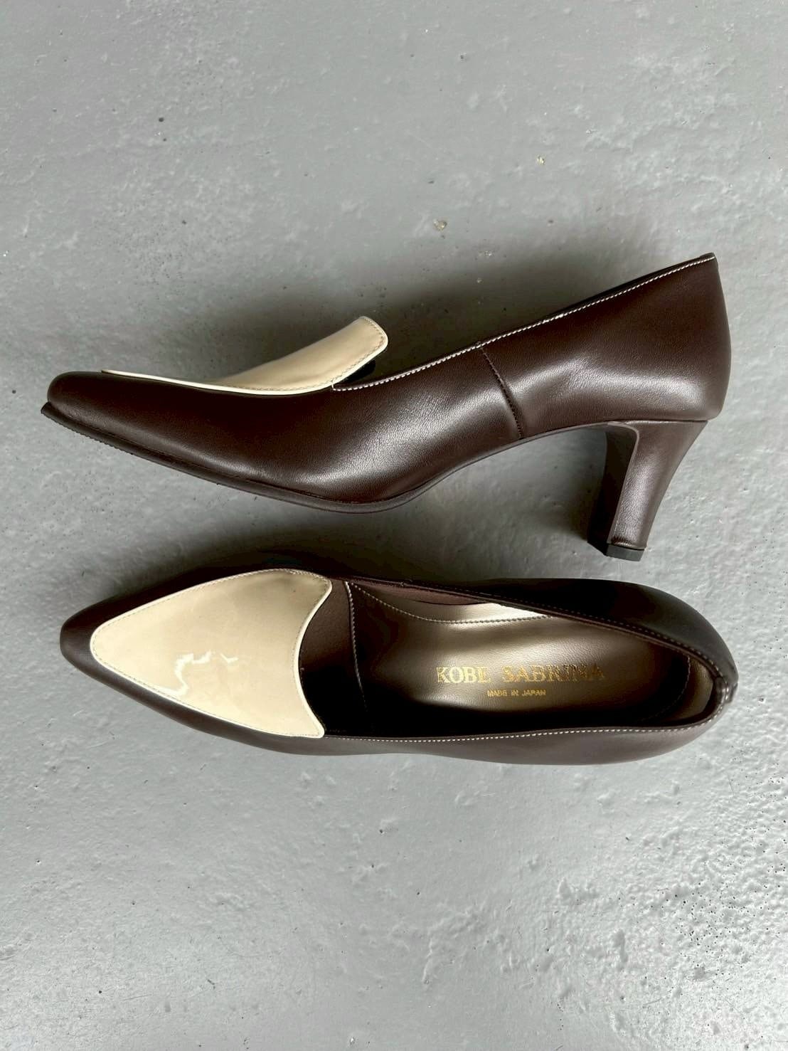 ダークブラウンにオフホワイトのエナメルでデザインしたお洒落な1足!