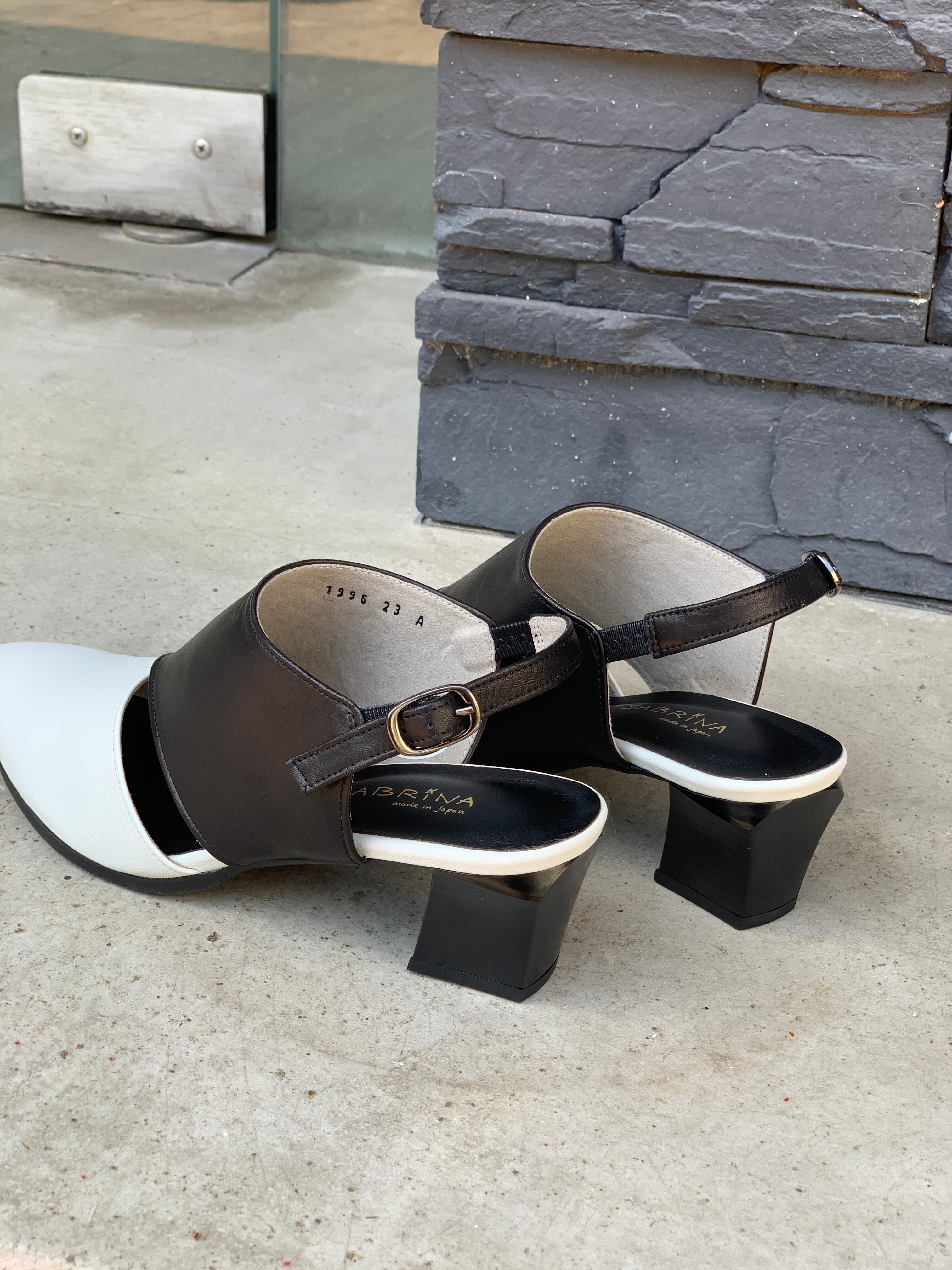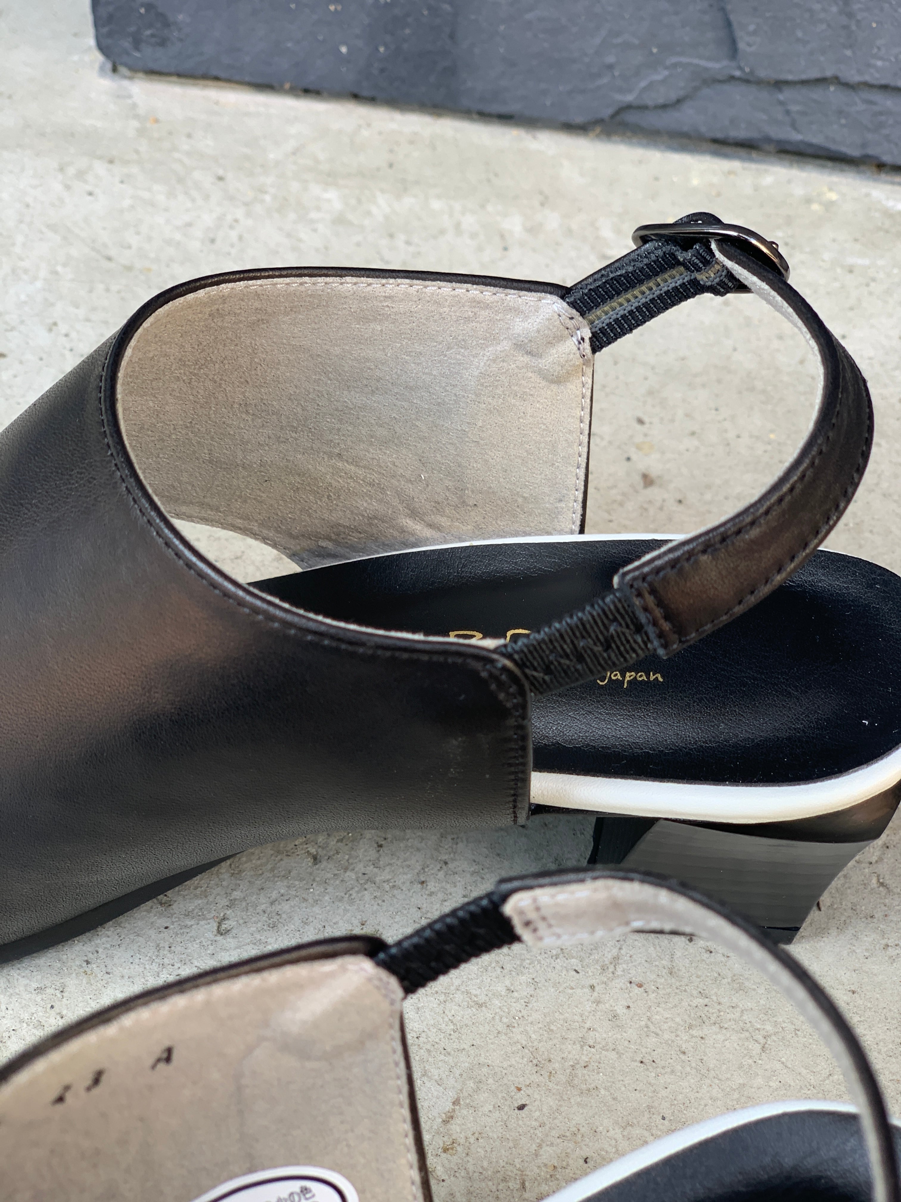 サイドがカットされていてるデザイン。程良いヌーディー感が大人な綺麗めサンダル。モノトーンで合わせやすく、パンツにもスカートにもOK!指先を見せたくない、長いシーズン使いたいという方にもおすすめです。バックストラップにはゴムが付いているので脱ぎ履きが楽。