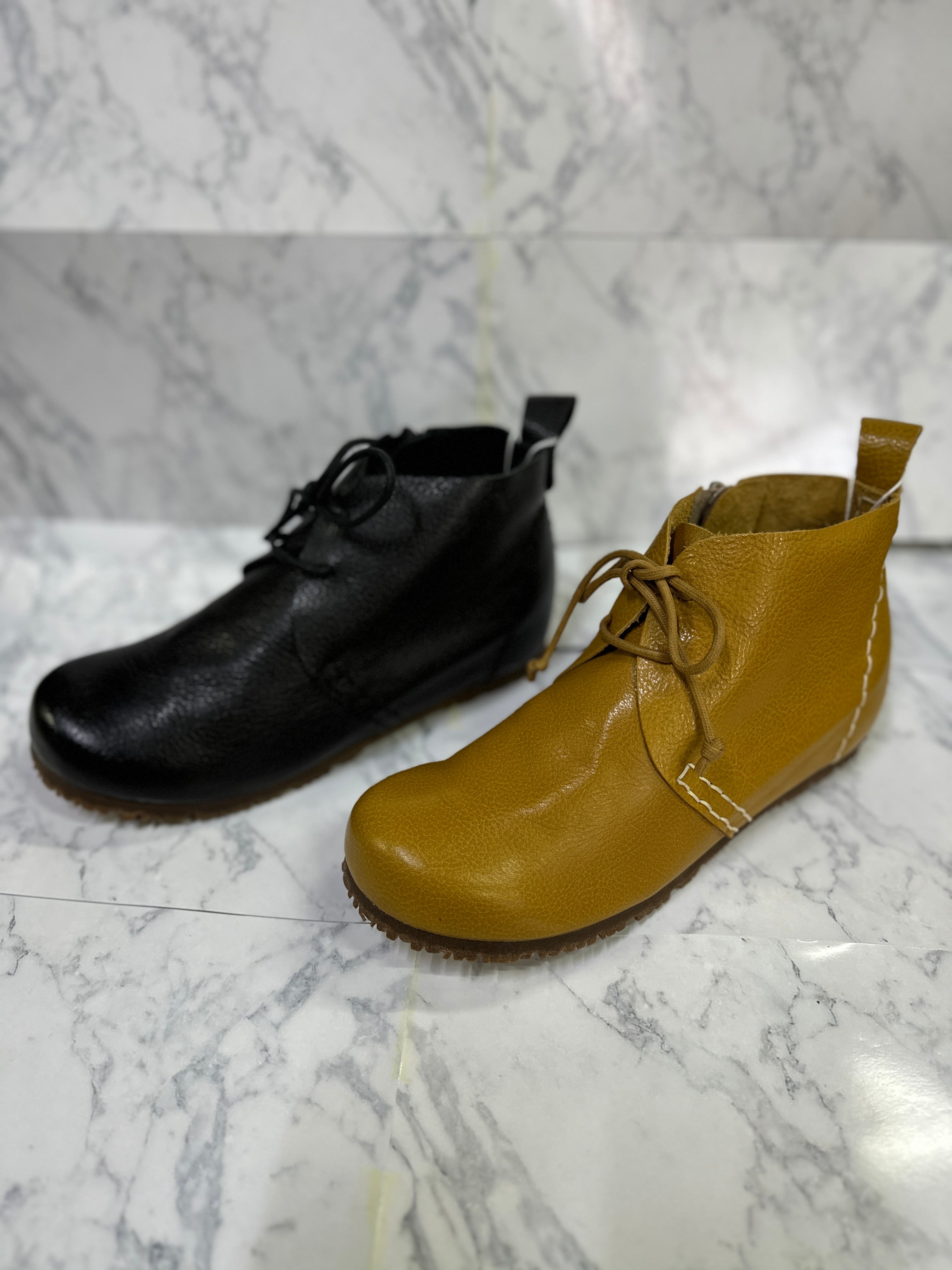 撥水レザー・オールウェザーソール使用。雨の日にも雪の日にも対応する新素材ソールを使っております。シンプルでショート丈なので冬だけではなく長いシーズンでお使い頂けるデザイン。5cmのインソールヒールなのでスタイルアップし、ペタンコよりも歩き易いとのお声が多い商品です!当店人気の1足☆