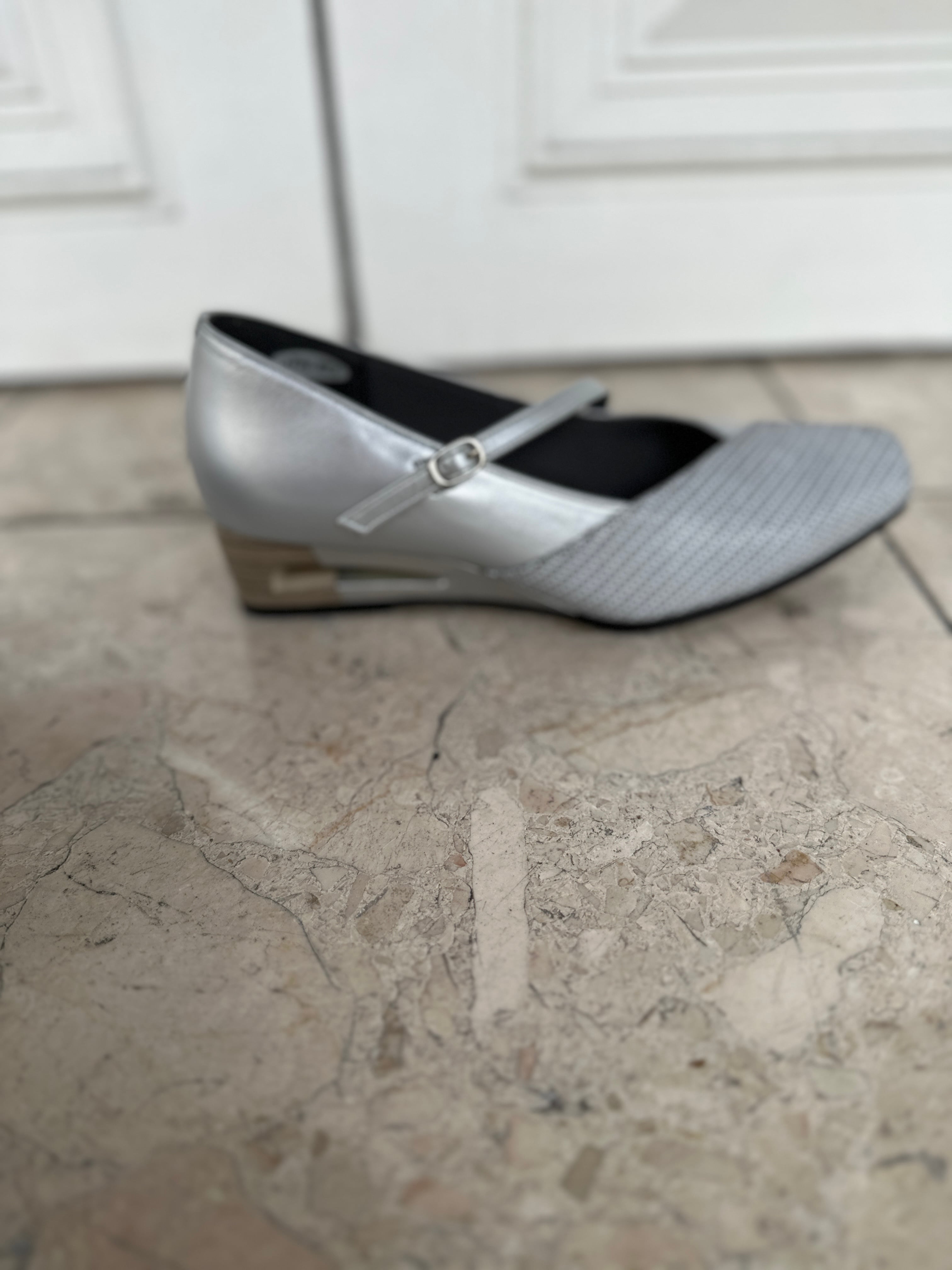 上質な本革を使用したとても綺麗なパンプス。カッティングヒールはウェッジソールなので安定感があり、甲にベルトがある事で、より安定してお召し頂けるパンプスです!ベルトの裏側にはゴムがあるので、そのまま脱ぎ履きができ、とても楽!パンツにもスカートにもOKです!