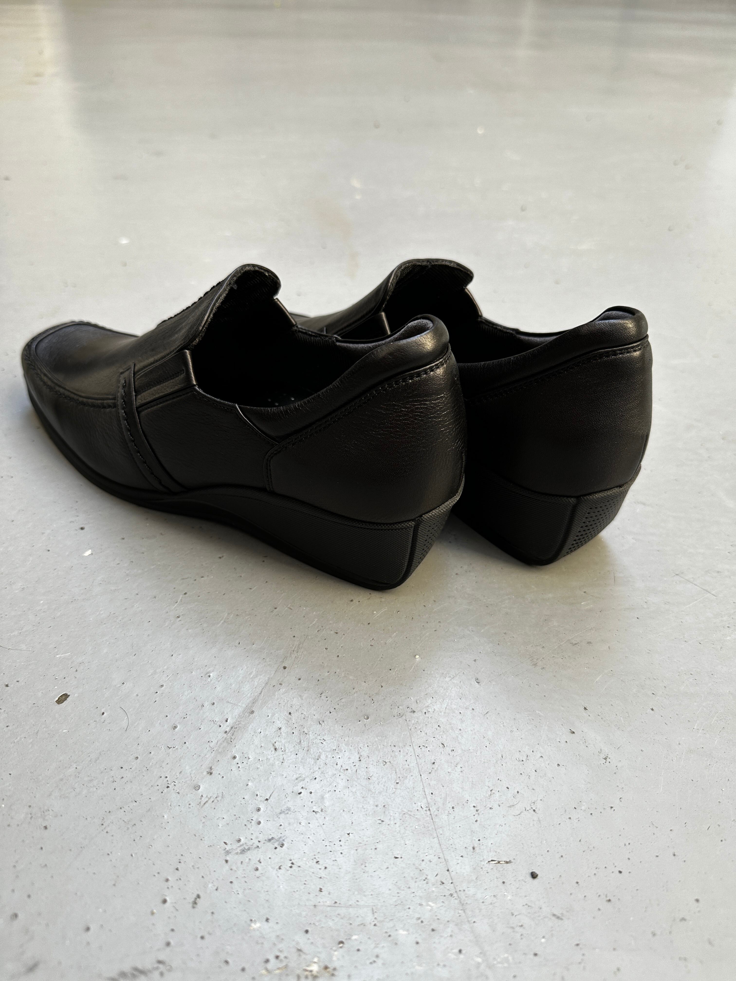 サブリナ定番のコンフォートスリッポン。パンツにもスカートにも合う優れもの。普段のお出かけには勿論ビジネスシーンにもお使い頂ける1足。柔らかなレザーでお幅も広めです。お指先が楽な様に縦寸が長めなので、お幅の狭い方はワンサイズ小さめでも◎