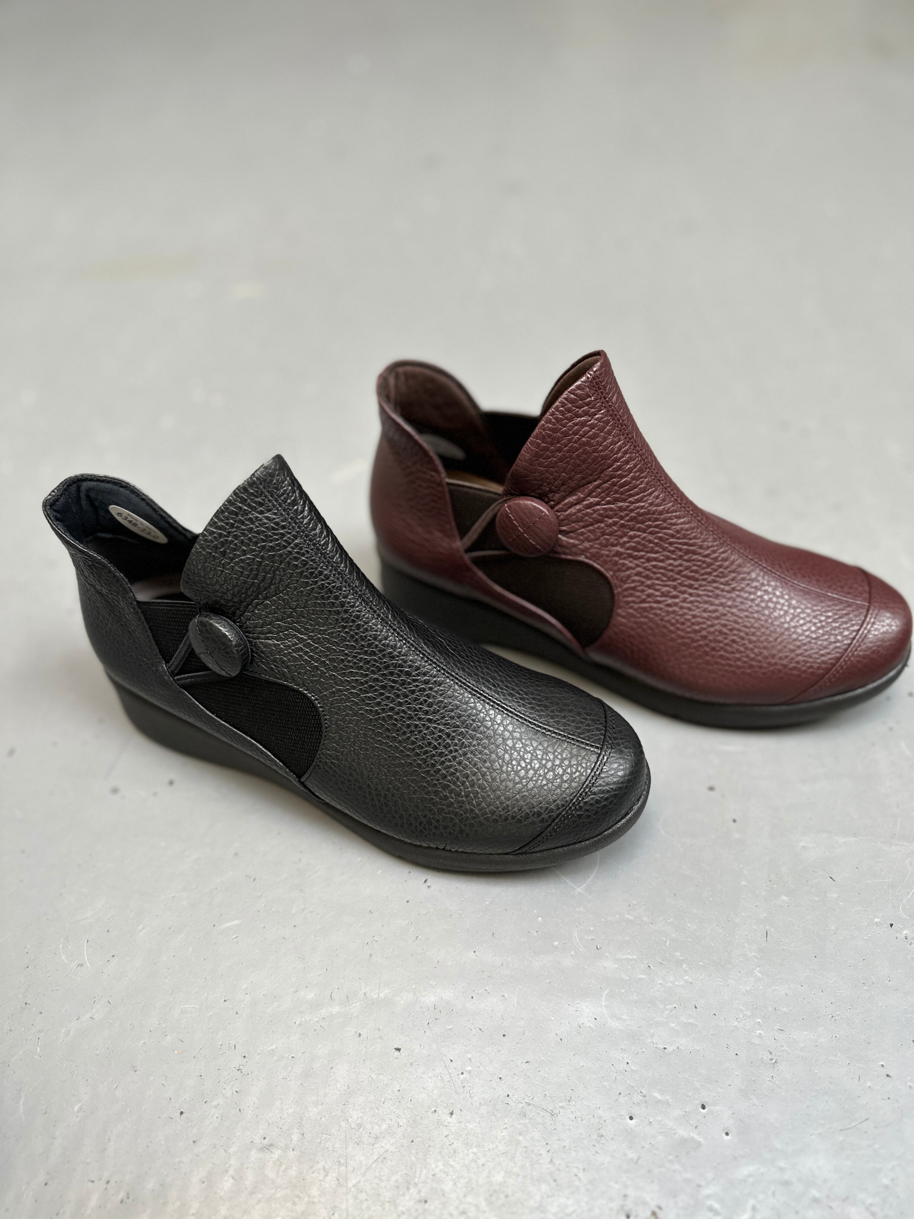 新作のショートブーツ。もちっとピタッとした履き心地のクッション性抜群の1足!シンプルなのでどんなお洋服にも合います。流行関係なくお使いいただけるブーツです。お幅も安心の4E!