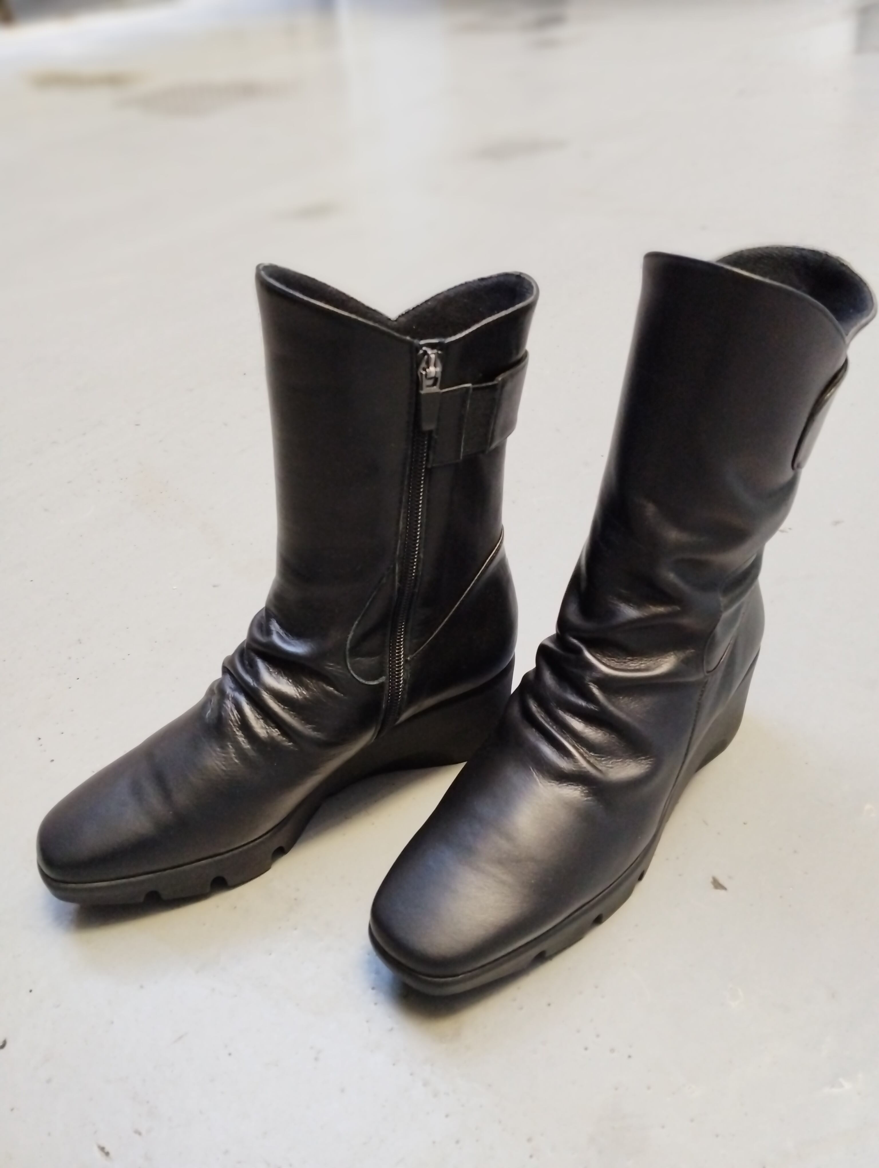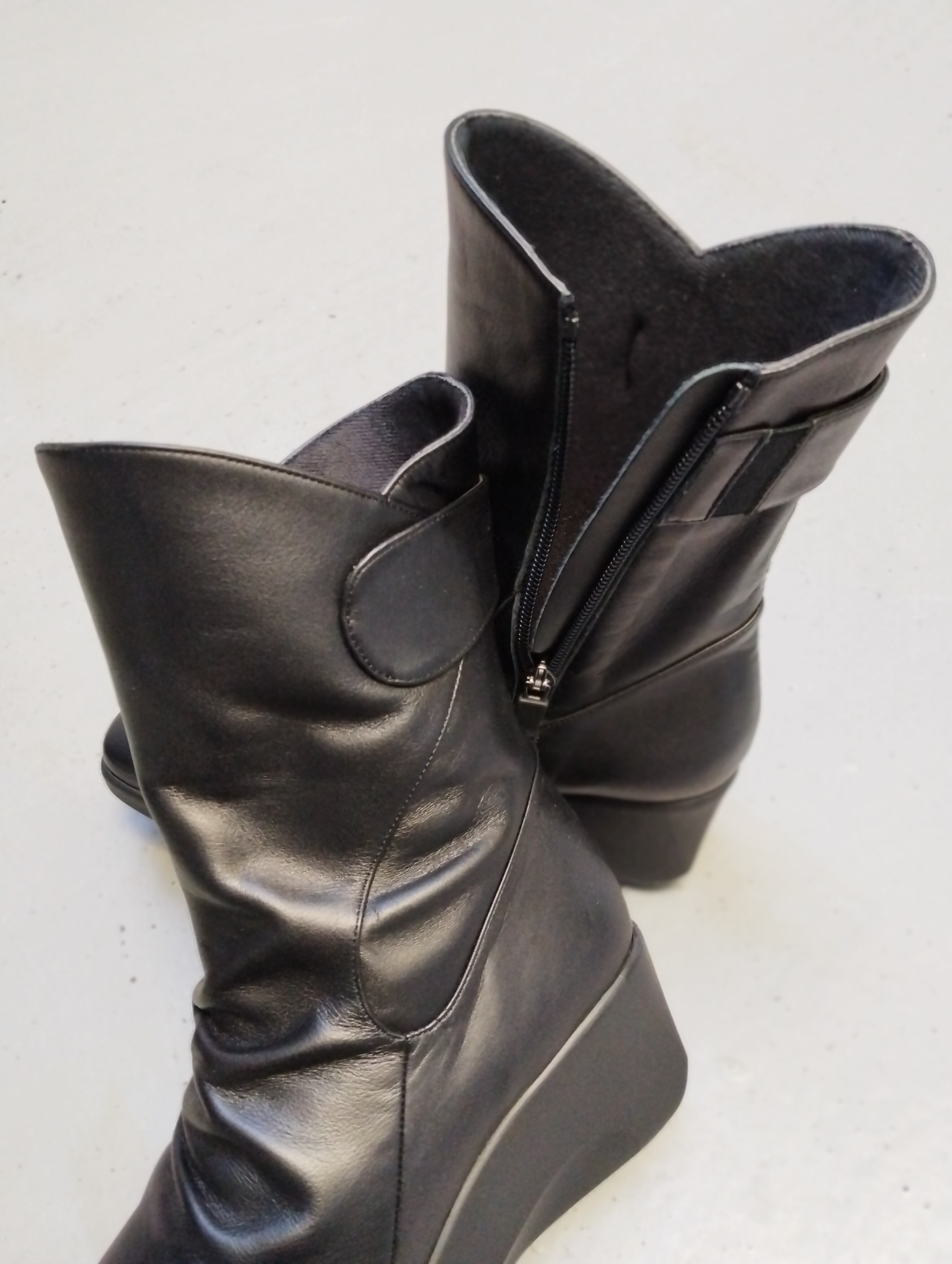 街中で旅先でと人気の厚底ブーツ☆柔らかな牛革で購入直後から足あたりが良く快適に履けるブーツです。スカート・ワンピース・パンツとボトムを選ばすコーディネートの幅が拡がる大変重宝する1足です。
