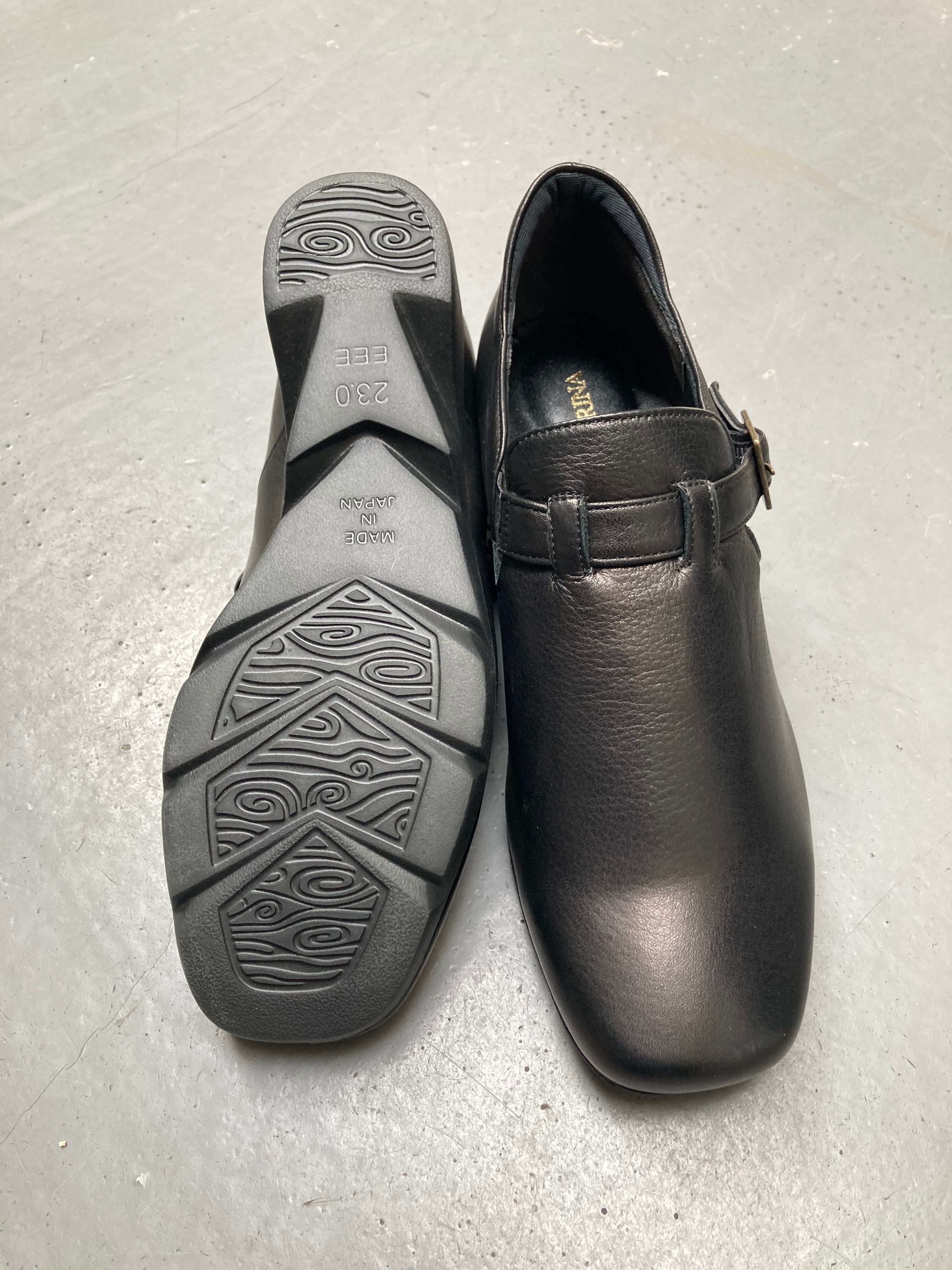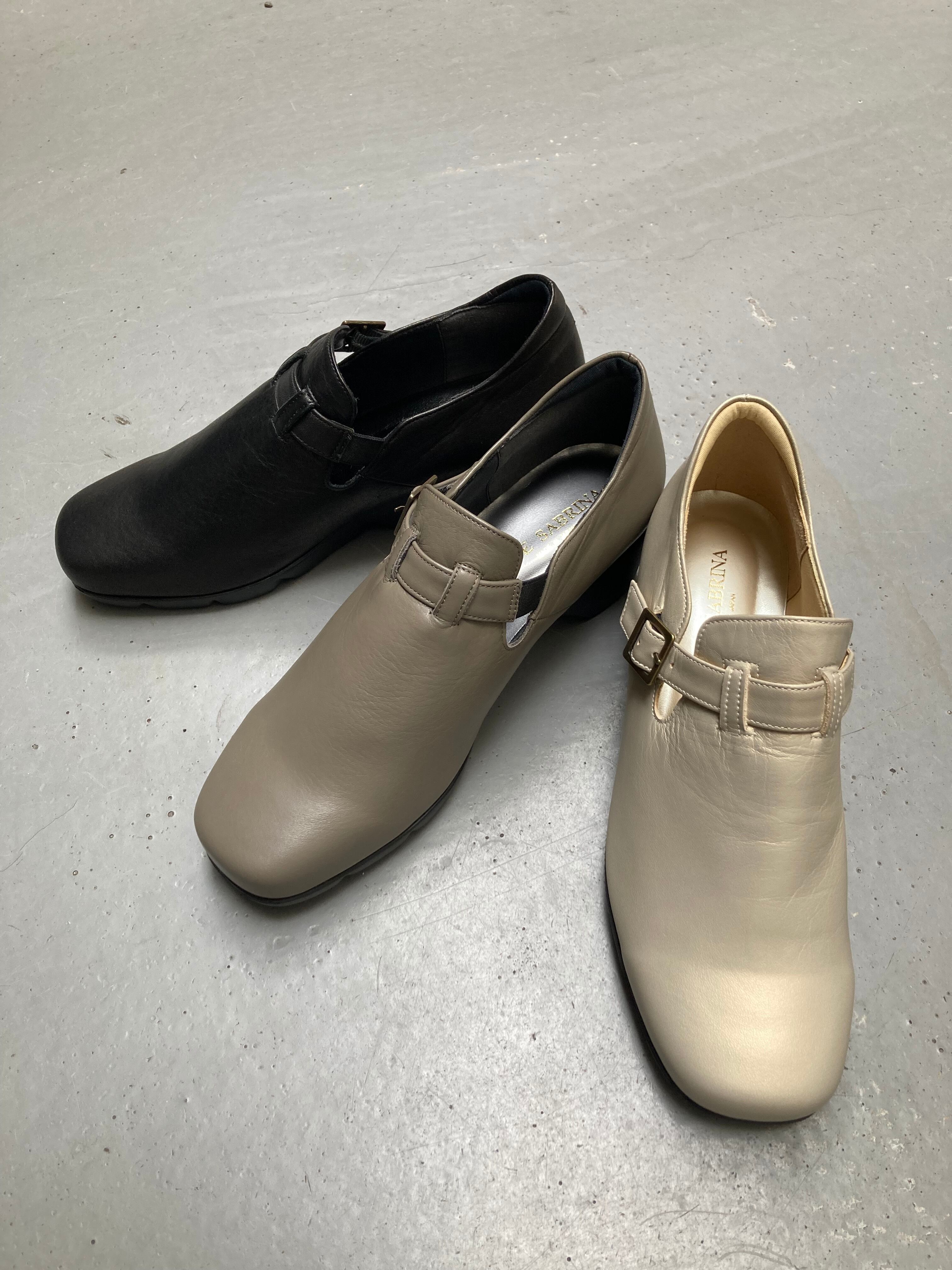柔らかいレザーと、とっても軽いソールを使用したサブリナ定番のスリッポンです。3E表記ですが4E程の幅で甲に厚みのある1枚革デザインなので、外反母趾の方にも是非おすすめしたいデザイン!ベルト裏にはゴムを入れて伸縮性を良く、ベルト調整可能。百貨店でも年中品薄状態の人気者!お色違いでクロ・プラチナもございます。