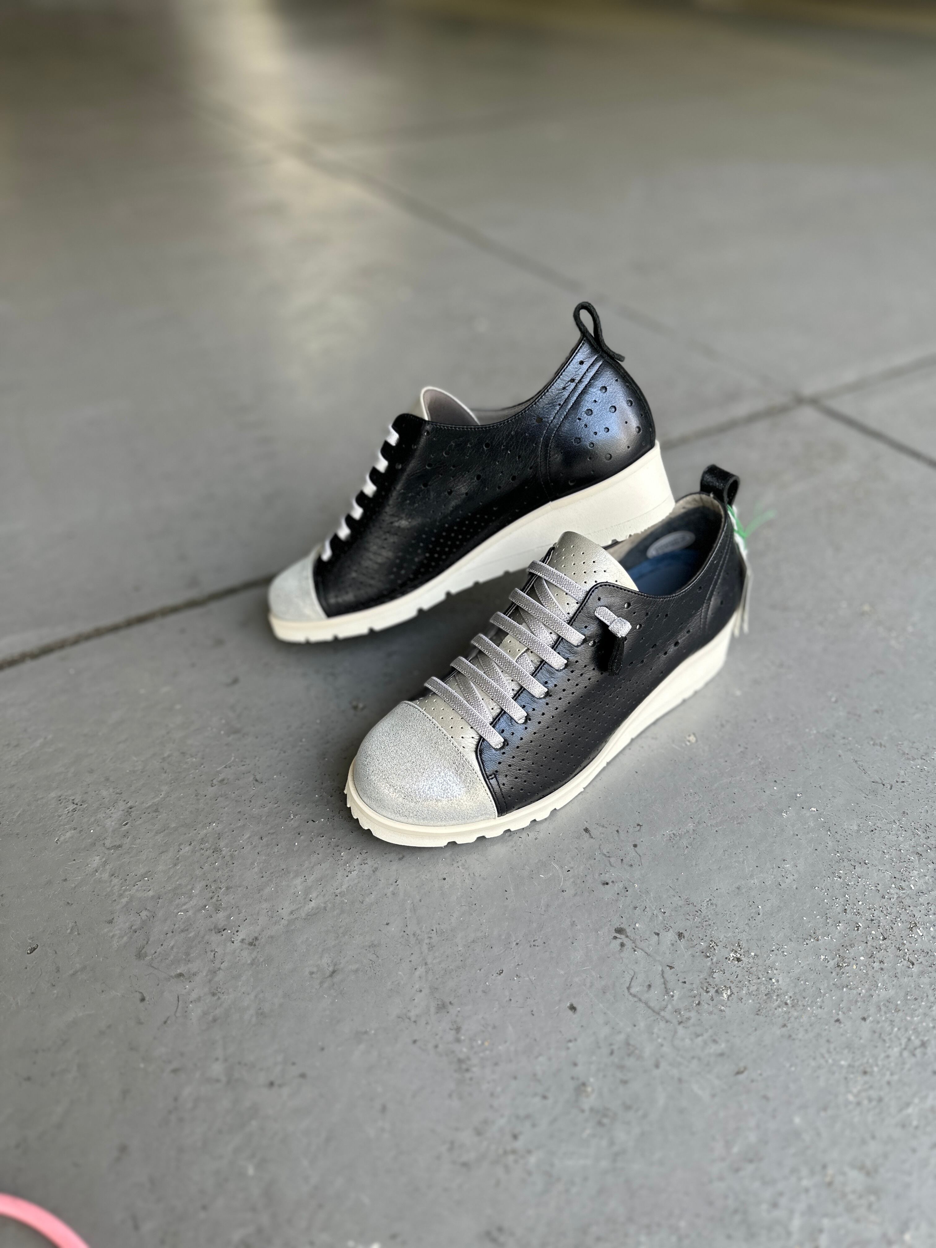 メタリックレザーで少し光沢があり、とても柔らかな履き心地です。ゴム紐タイプで足入れも良く軽量。店頭人気商品!お色違いで白もございます。