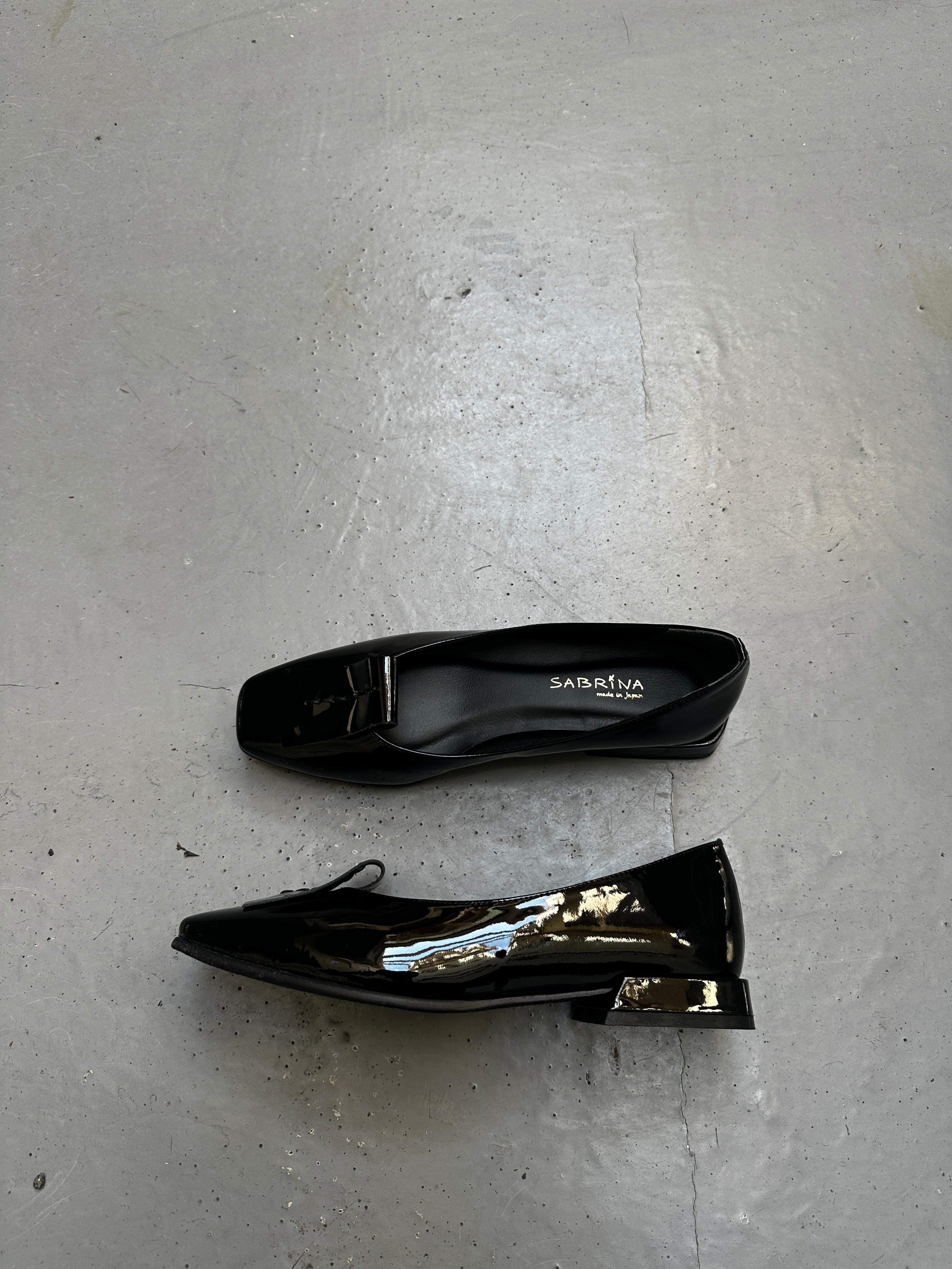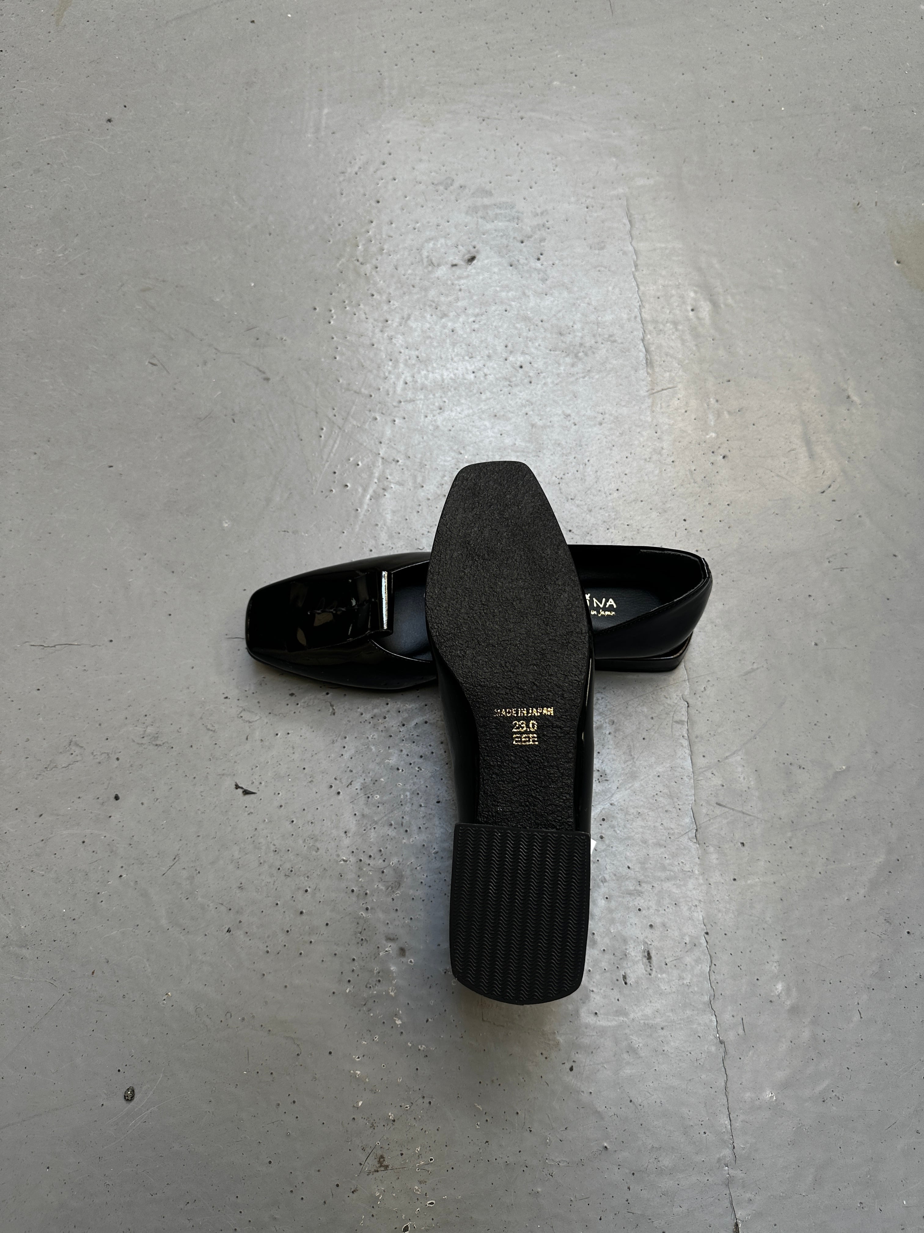 エナメルのフラットパンプス。柔らかなエナメルです。スクエアトゥがスカートにもパンツにも合わせやすく綺麗めカジュアルに◎!お色違いでパープルもございます。オシャレな1足です!