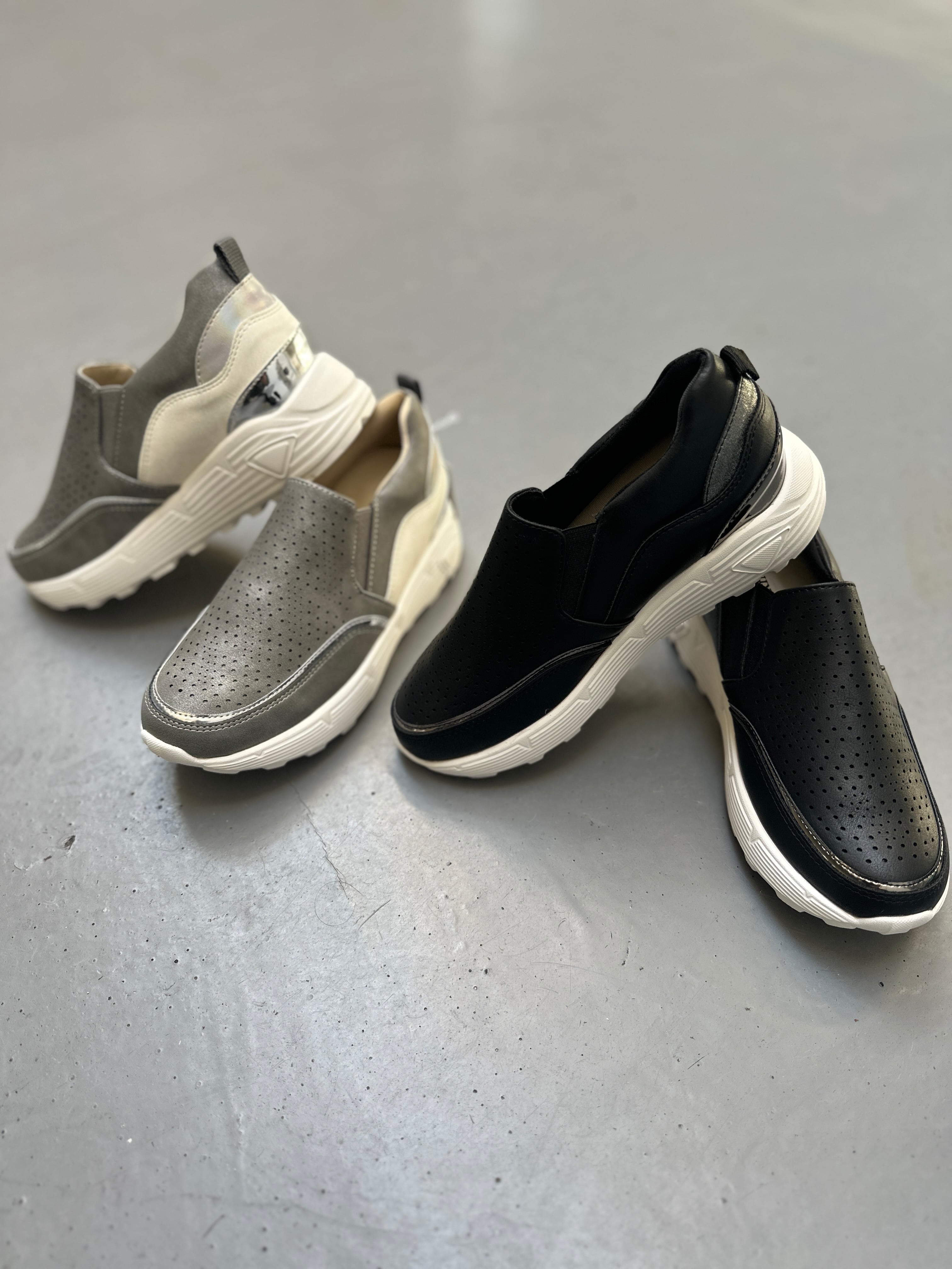 クッション性も良く超軽量!今流行りのハイテク系デザイン!雨の日もOKなスリッポンです。お色違いでグレーもございます。